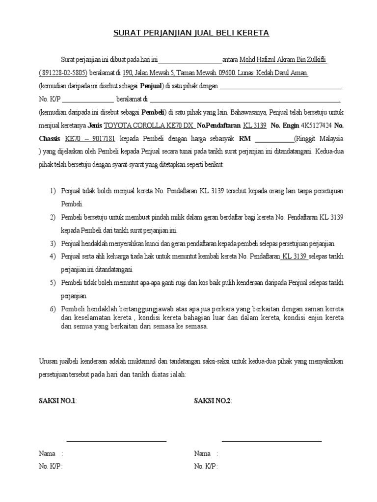 Surat Perjanjian Jual Beli Kereta Pdf